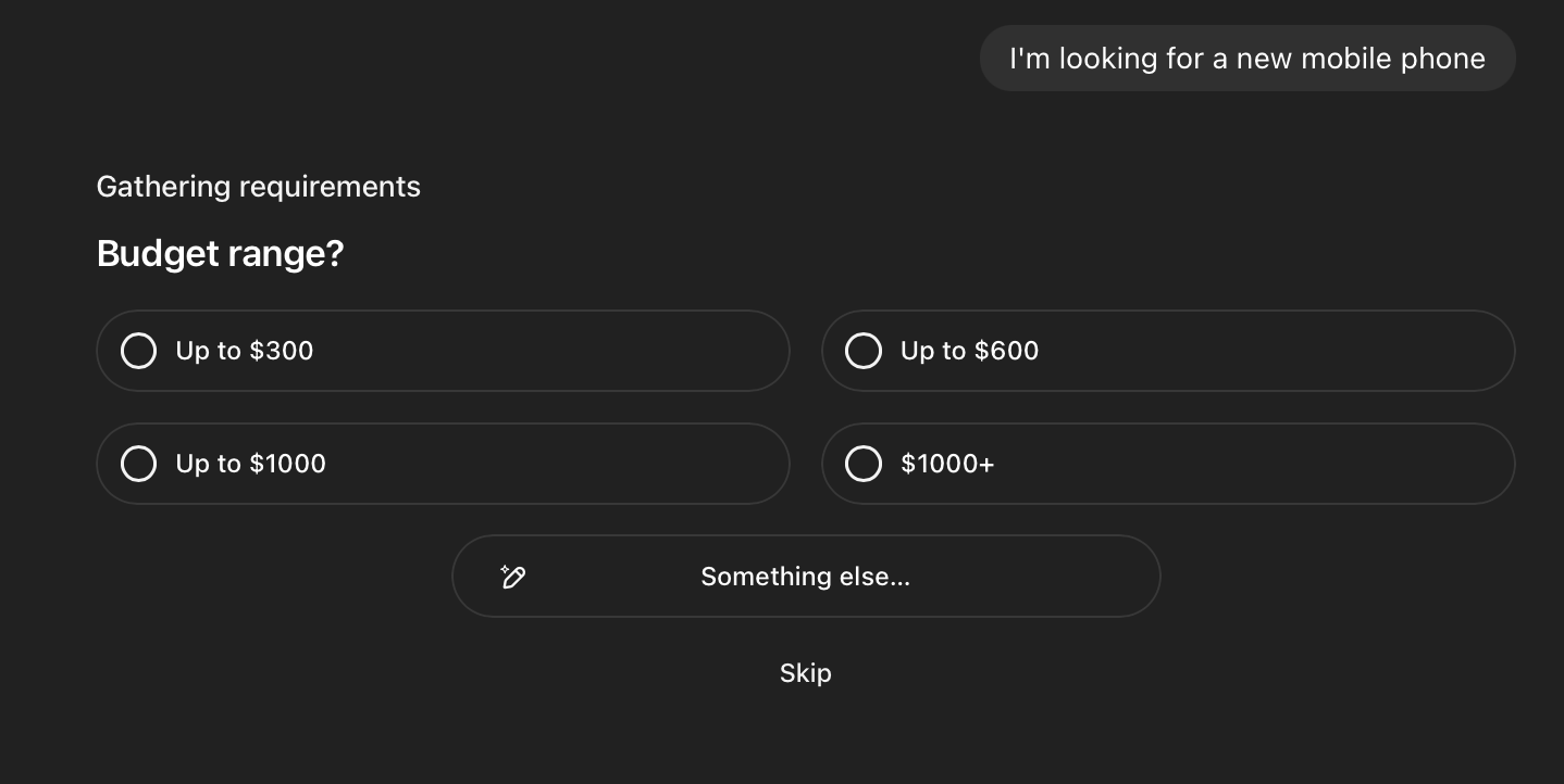 Start with a prompt like “I’m looking for a new mobile phone” ChatGPT asks clarifying questions (e.g., budget, features) and refines in real-time based on your feedback.