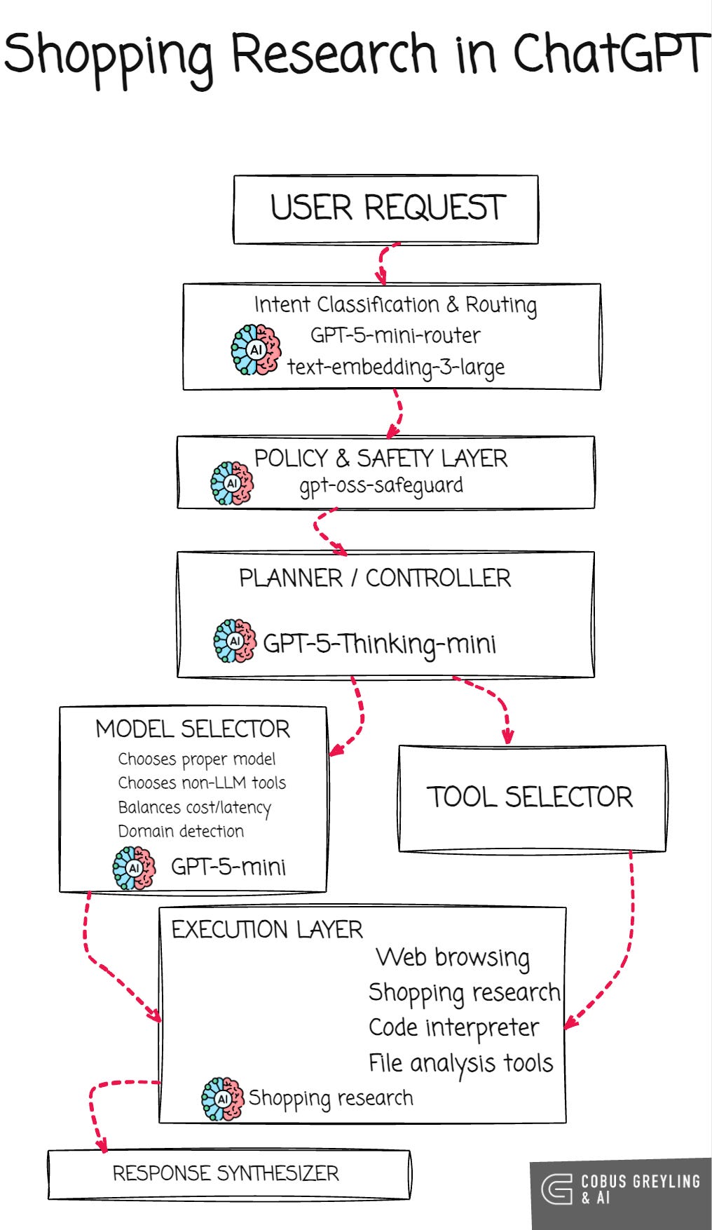 Shopping Research operates within ChatGPT’s layered architecture: