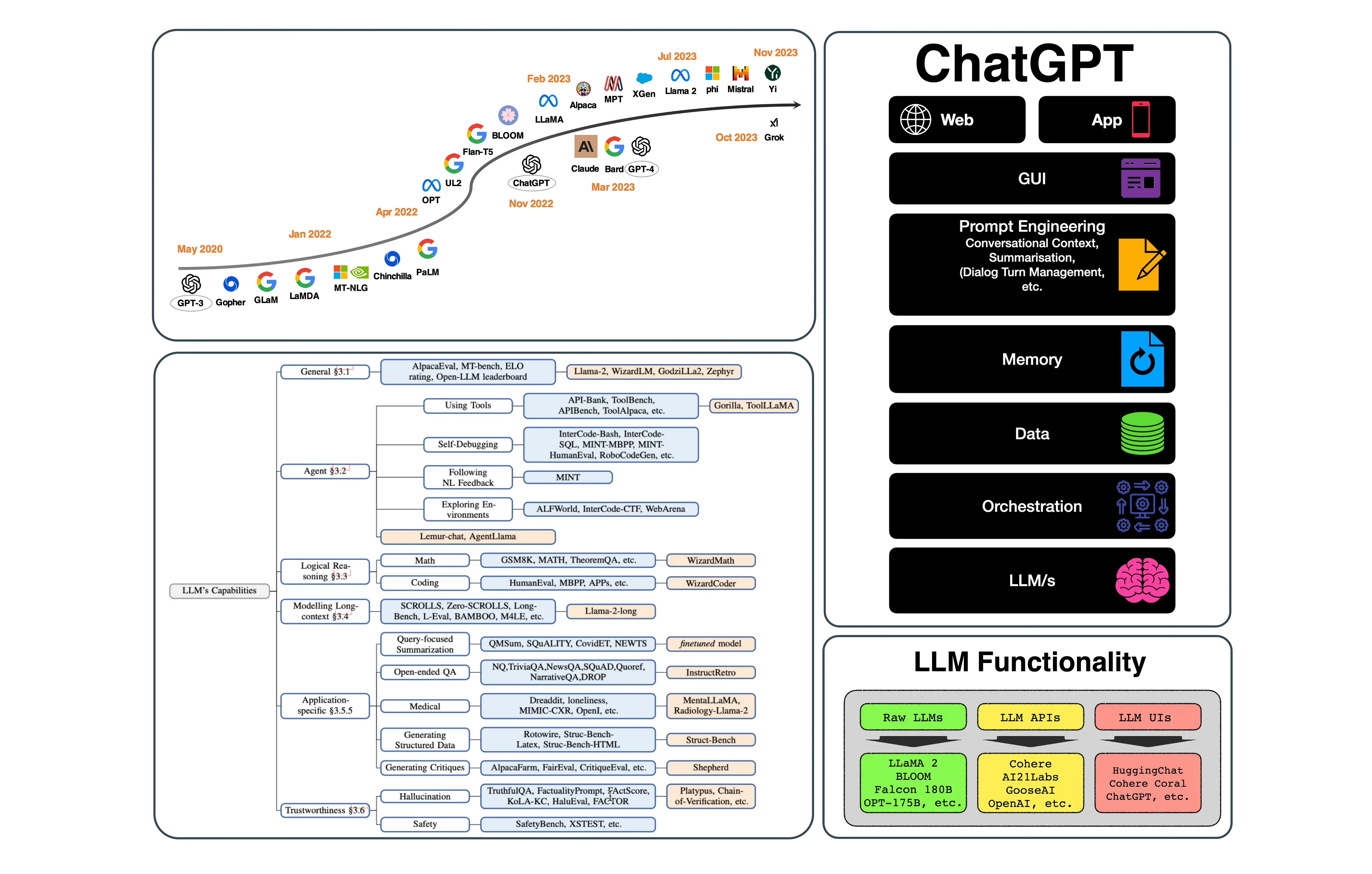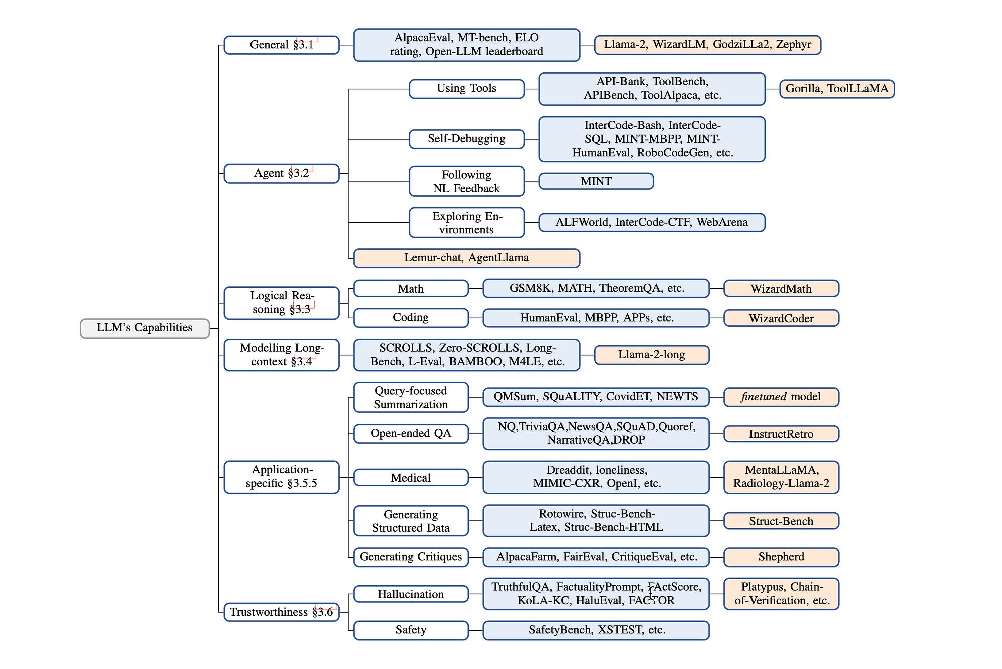 The study includes the typology shown below. This maps out the capabilities of LLMs and the best performing open-LLMs.