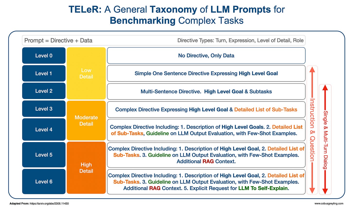 A recent study tackled this issue by developing a taxonomy called TELeR (Turn, Expression, Level of Details, Role), which aims to comprehensively benchmark prompts across these dimensions.