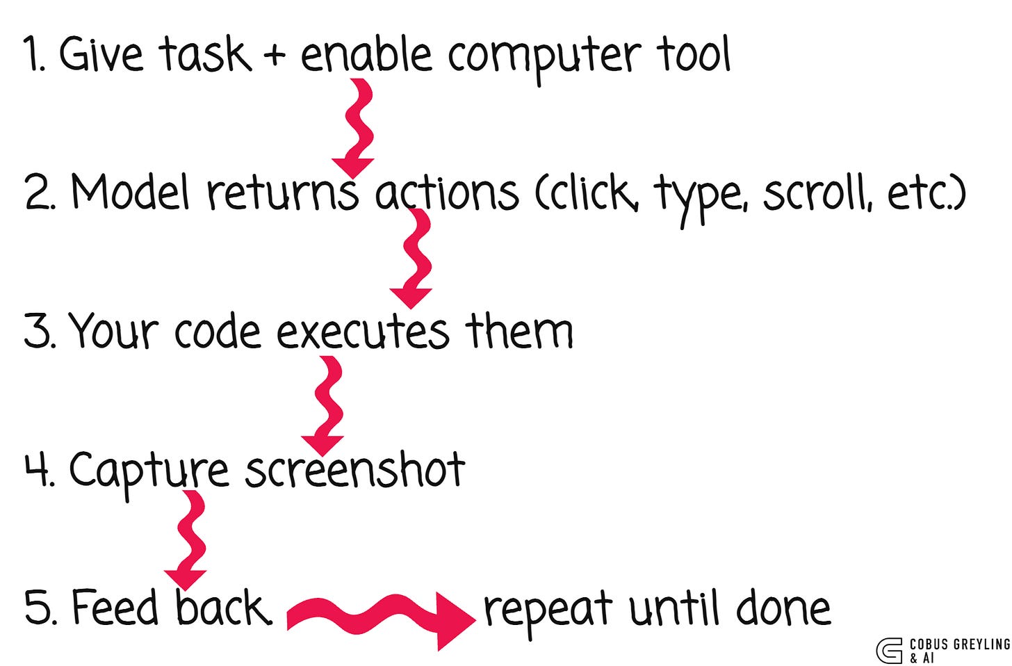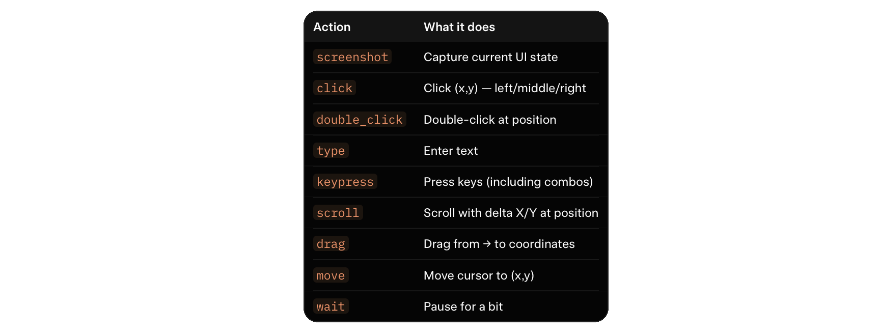 No DOM scraping. No accessibility trees. No brittle selectors. Just pixels and primitives.