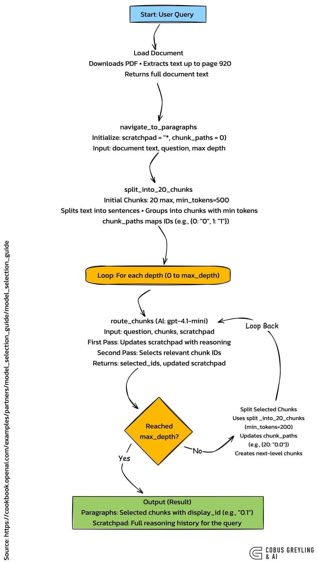 This adds intelligence, the model thinks about the query and picks chunks that match. At deeper levels, it refines on sub-chunks.