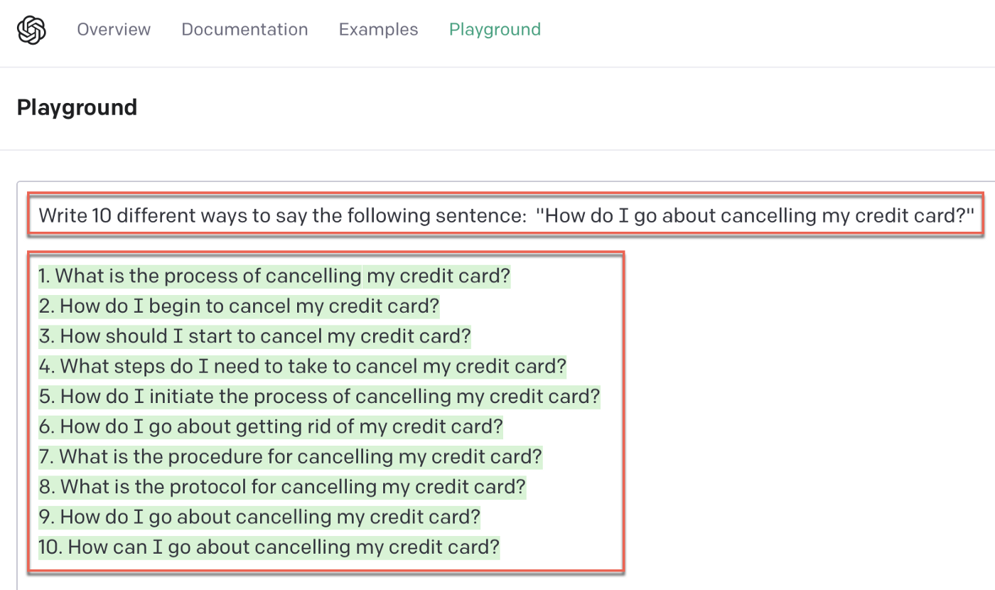 ⏺ Synthetic training data for chatbots. This is currently the most common use of LLMs in chatbot development frameworks. A simple request can generate multiple training phrases for the same intent.