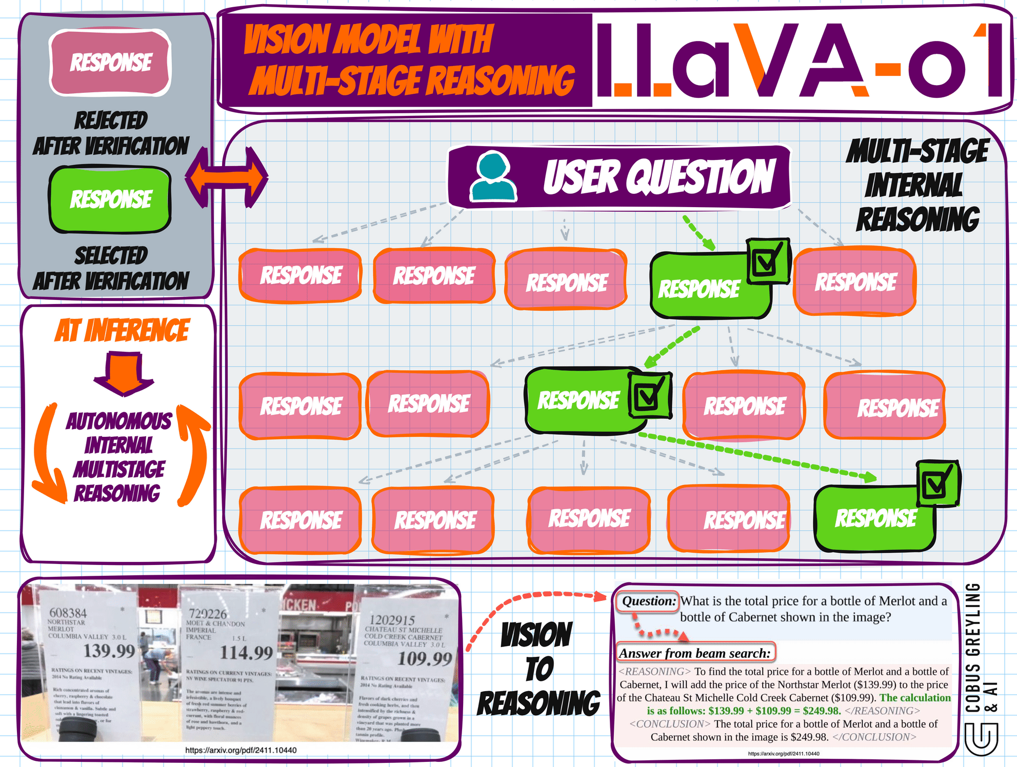 In contrast, LLaVA-o1 introduces a transparent, multi-stage reasoning approach that integrates visual and textual information to provide greater insight into its decision-making process.
