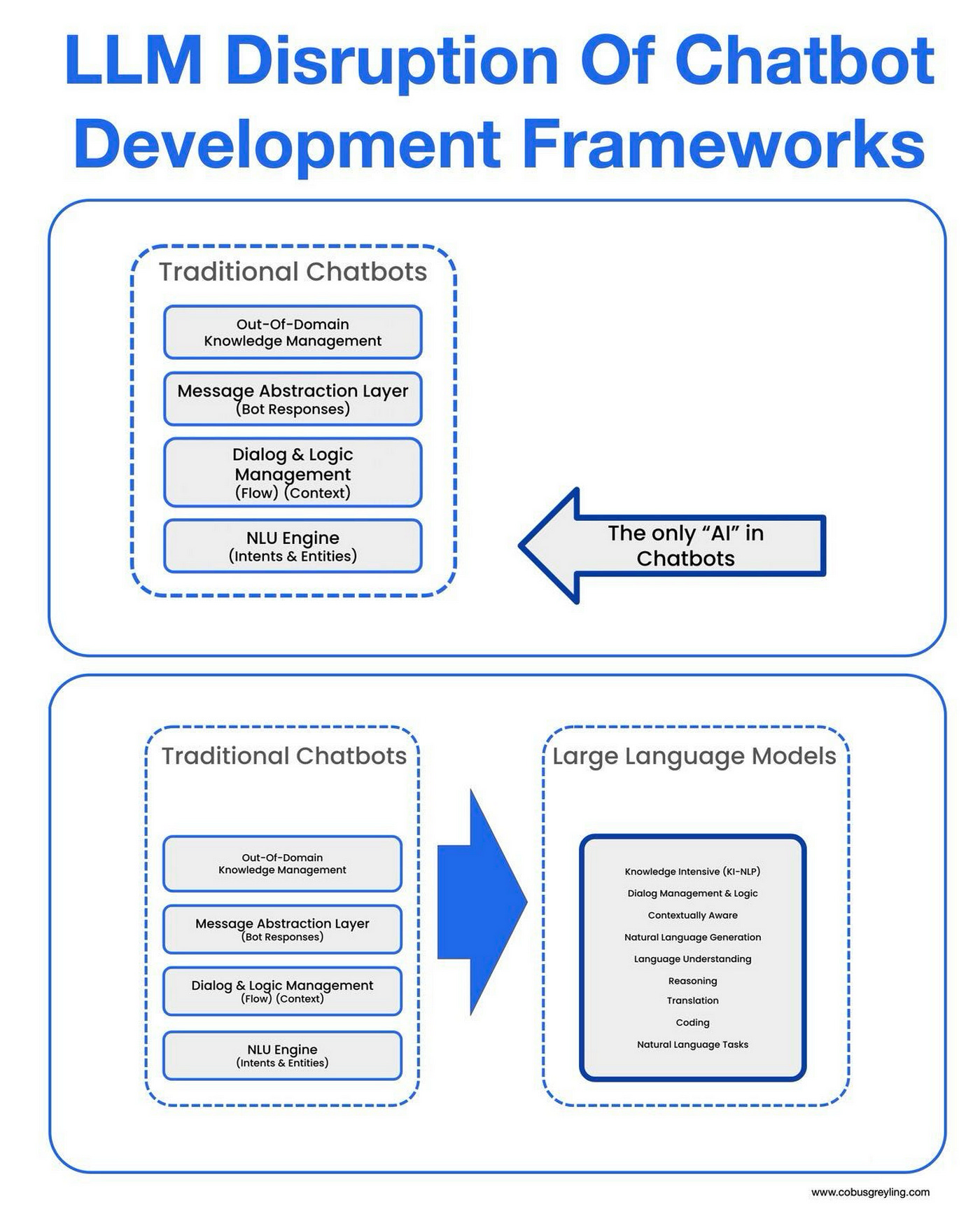 Many organisations and technology providers are navigating the transition from traditional chatbots to incorporating Large Language Models with varying levels of success.