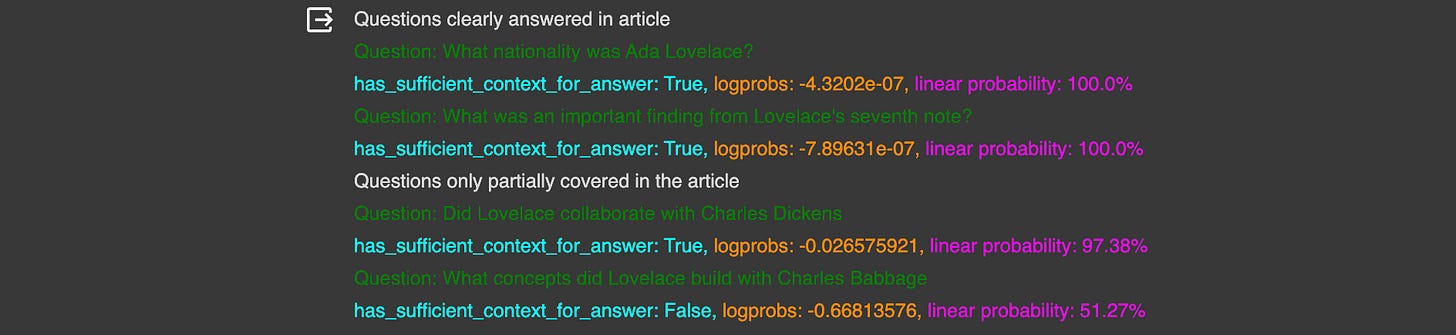 However, for the trickier questions that aren’t as straightforward in the article, the model is less certain about having enough context. This acts as a valuable guide to ensure that our retrieved content meets the mark.
