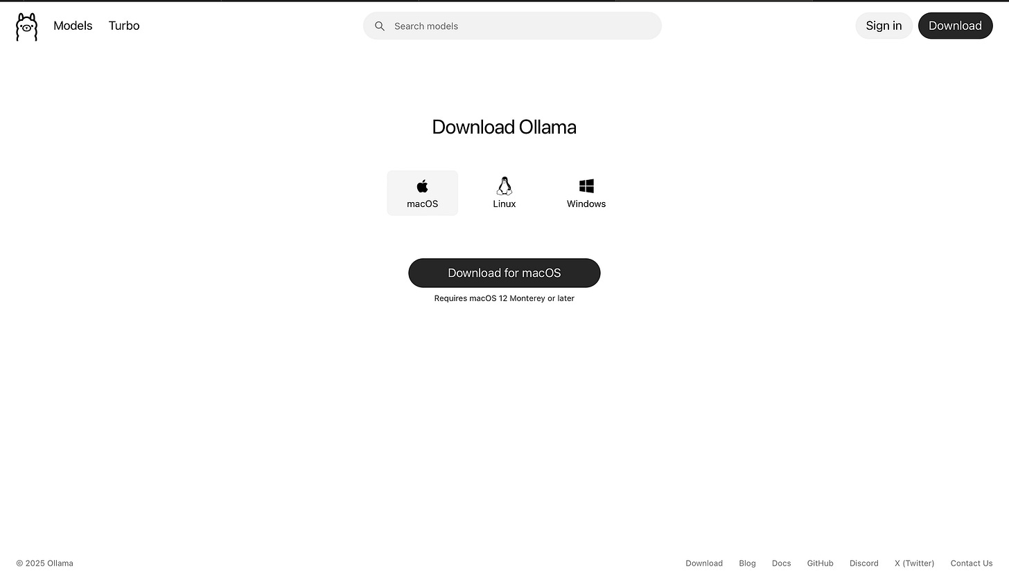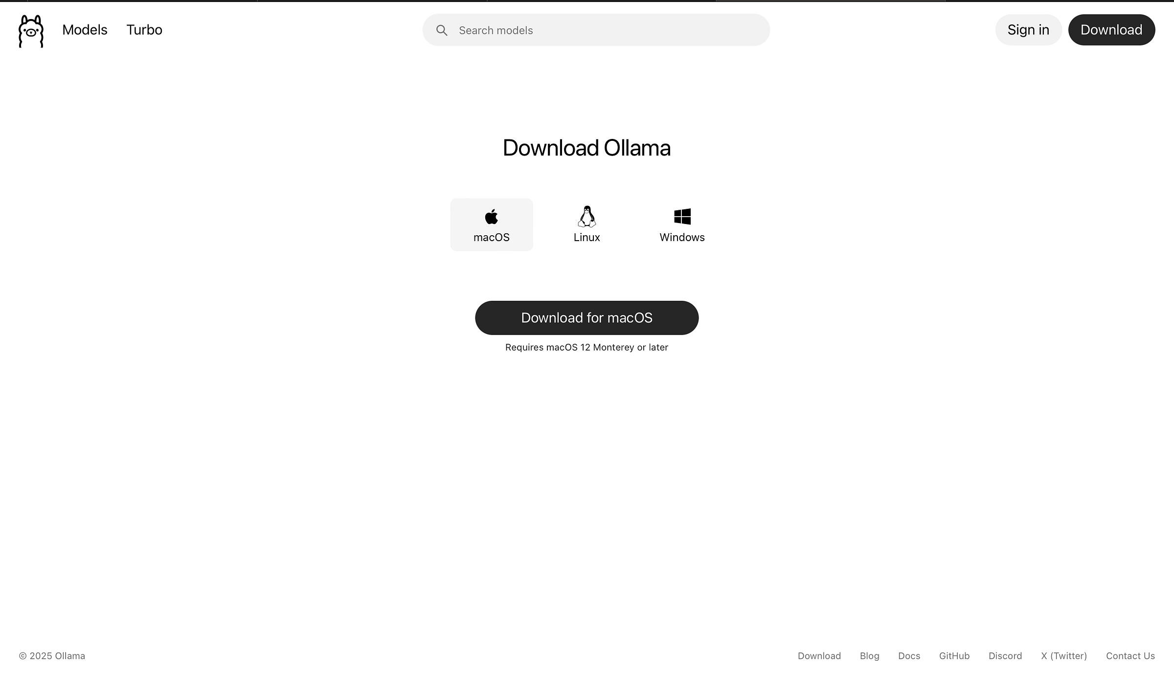 The download options for Ollama is shown on their homepage…download the macOS version.