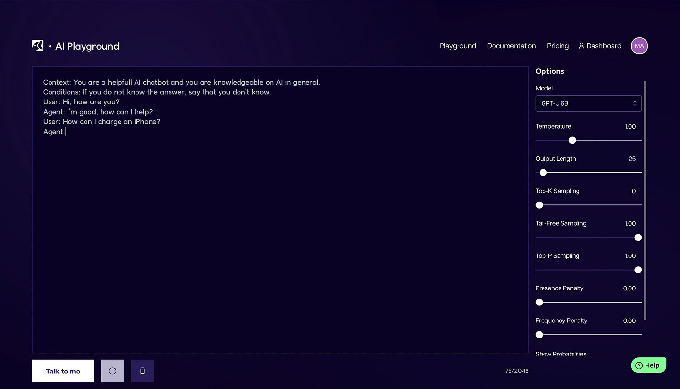 Below is a typical complete prompt, shown in the Goose AI playground.
