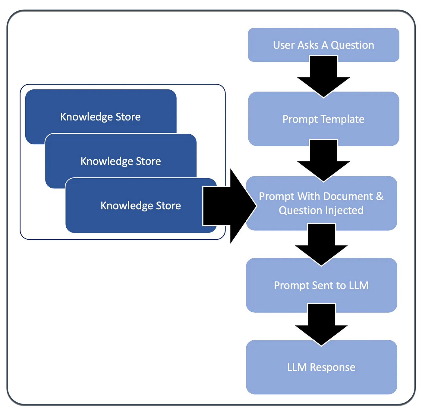 In the majority of prompt pipelines, the flow is initiated by a user request. The request is directed to a specific prompt template which is injected with highly contextual information for inference.
