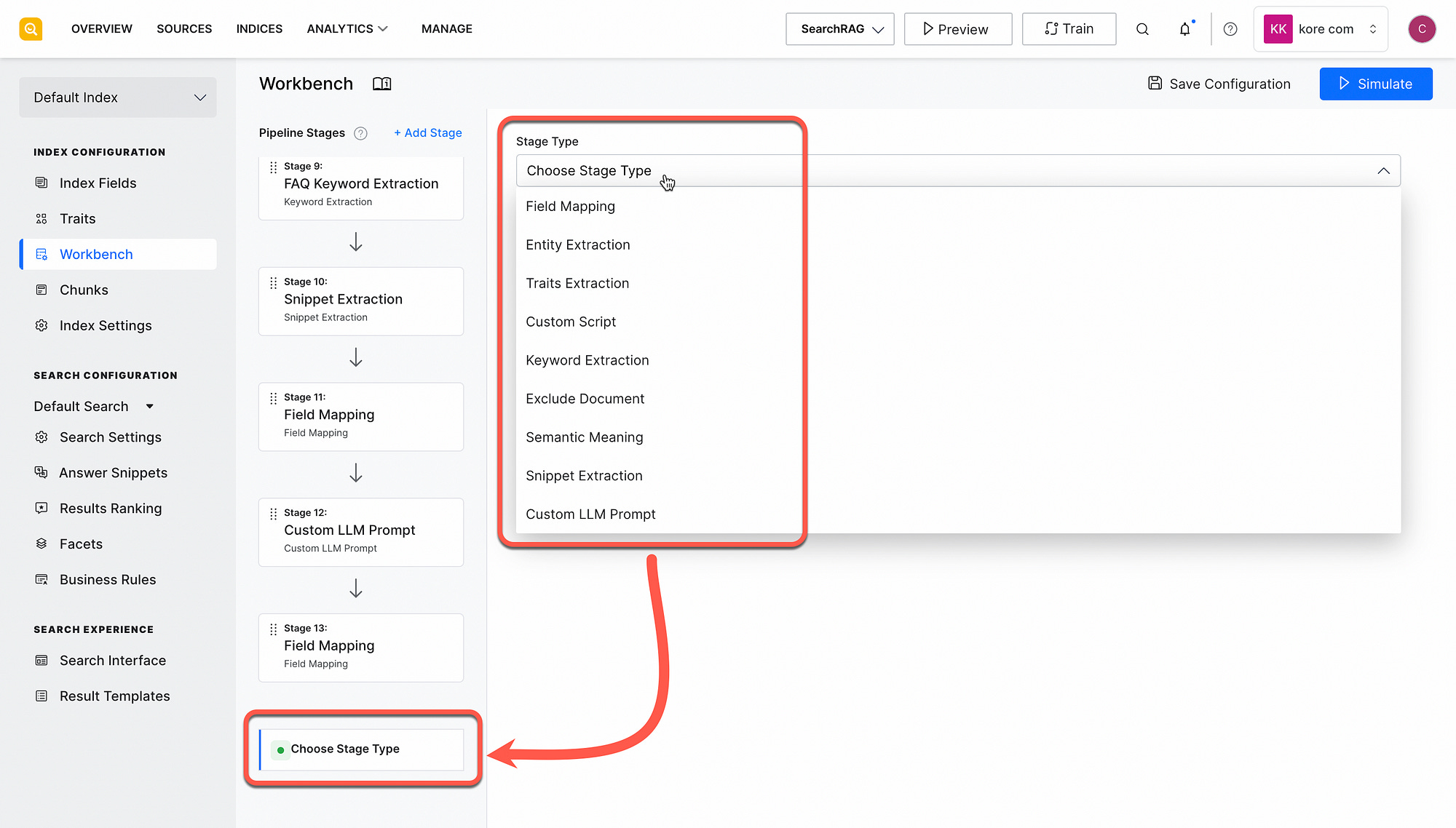 Below is a list of possible prompt pipeline stages, including extracting snippets, traits in the data, custom scripts, entity extraction and more.