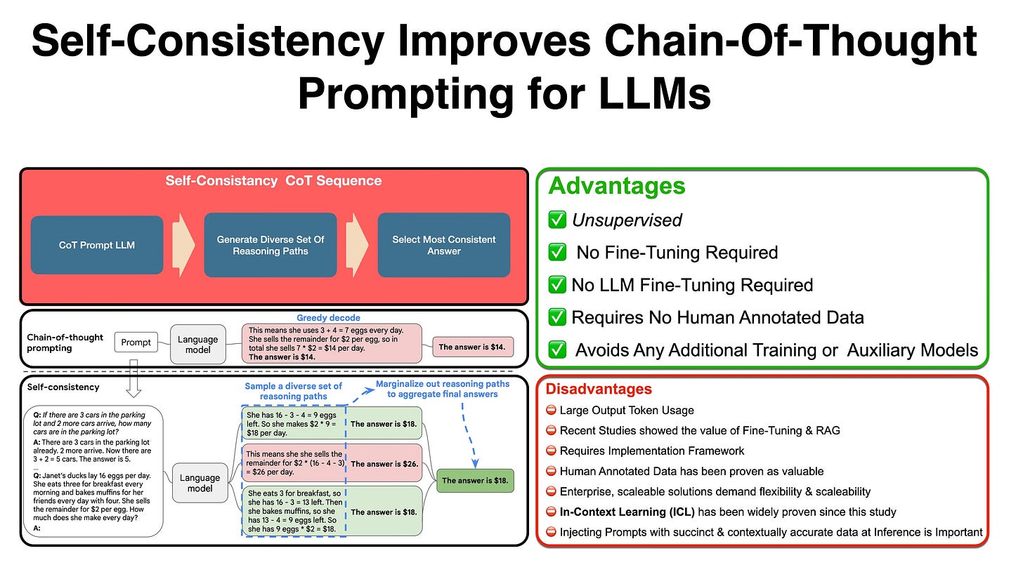 The paper on Self-Consistency Prompting was published 7 March 2023, as an improvement on Chain-Of-Thought Prompting. At the time it was certainly a novel advancement. However, so much has happened in
