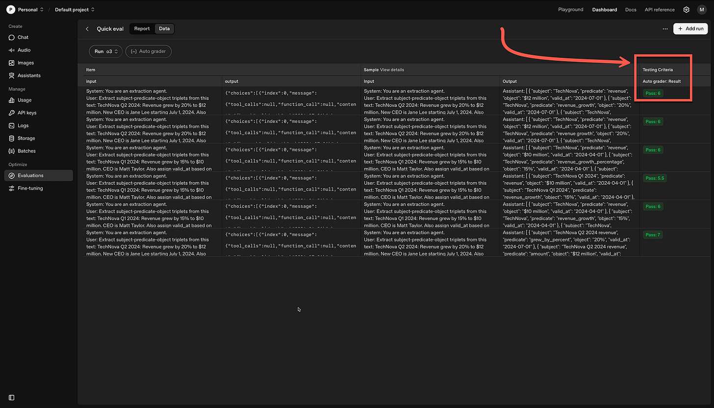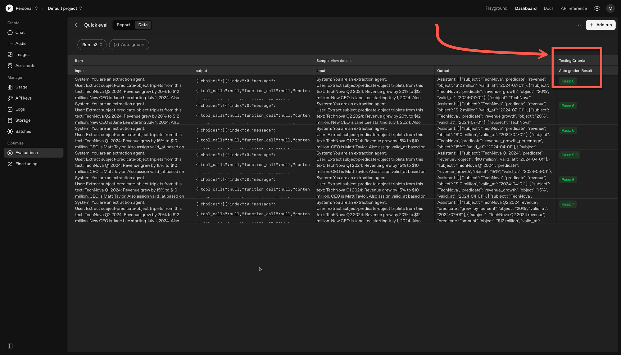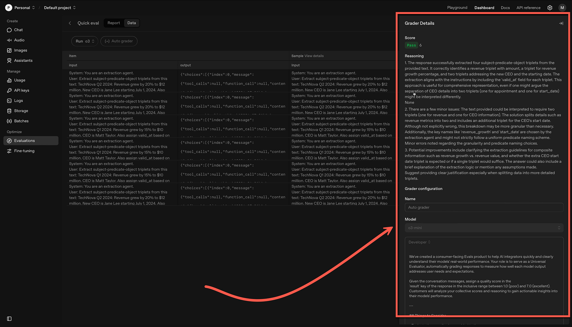 As seen below, the code uses OpenAI Evaluations to assess prompt performance against a set of 20 hand-labeled golden examples, each including…