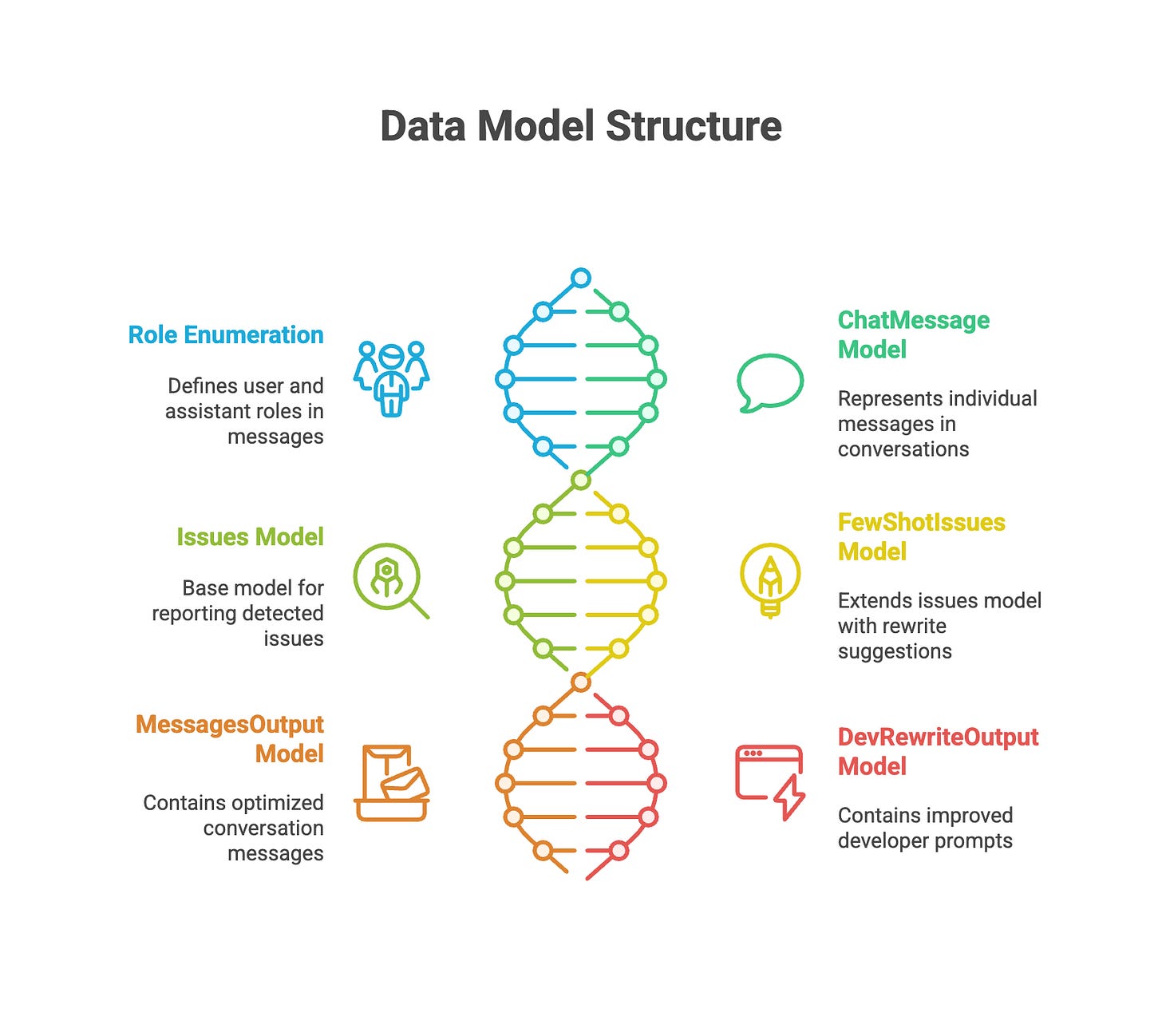 Inconsistencies between prompt rules and few-shot examples — and then rewrites the prompt to fix them while preserving the original intent.