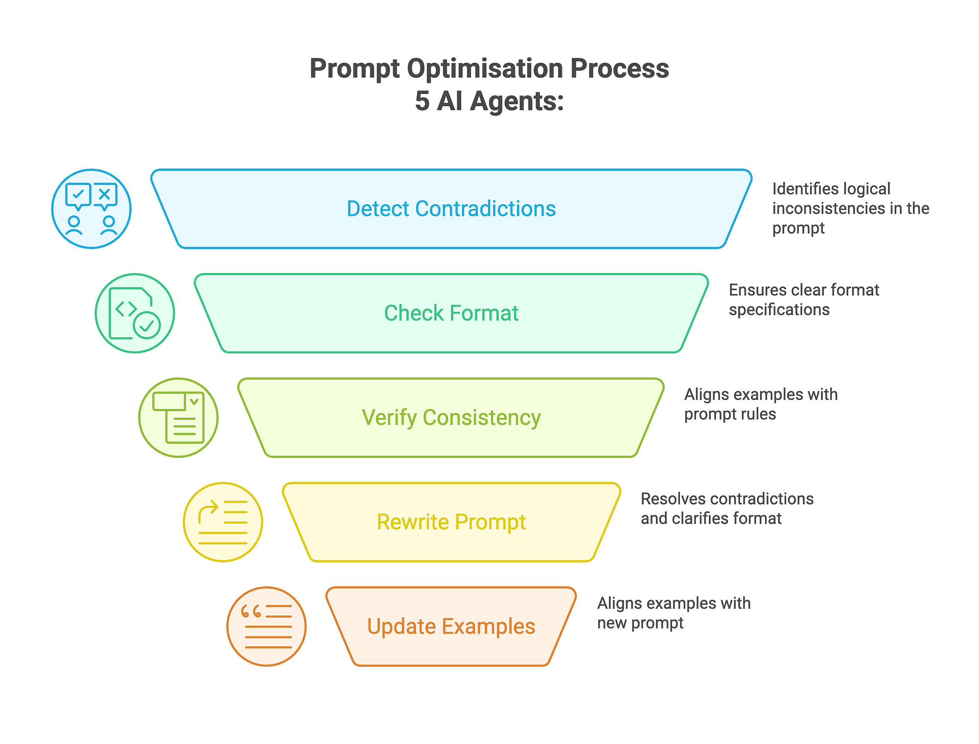 This multi-AI Agent solution makes prompt optimisation scalable and less manual, especially for complex few-shot setups.