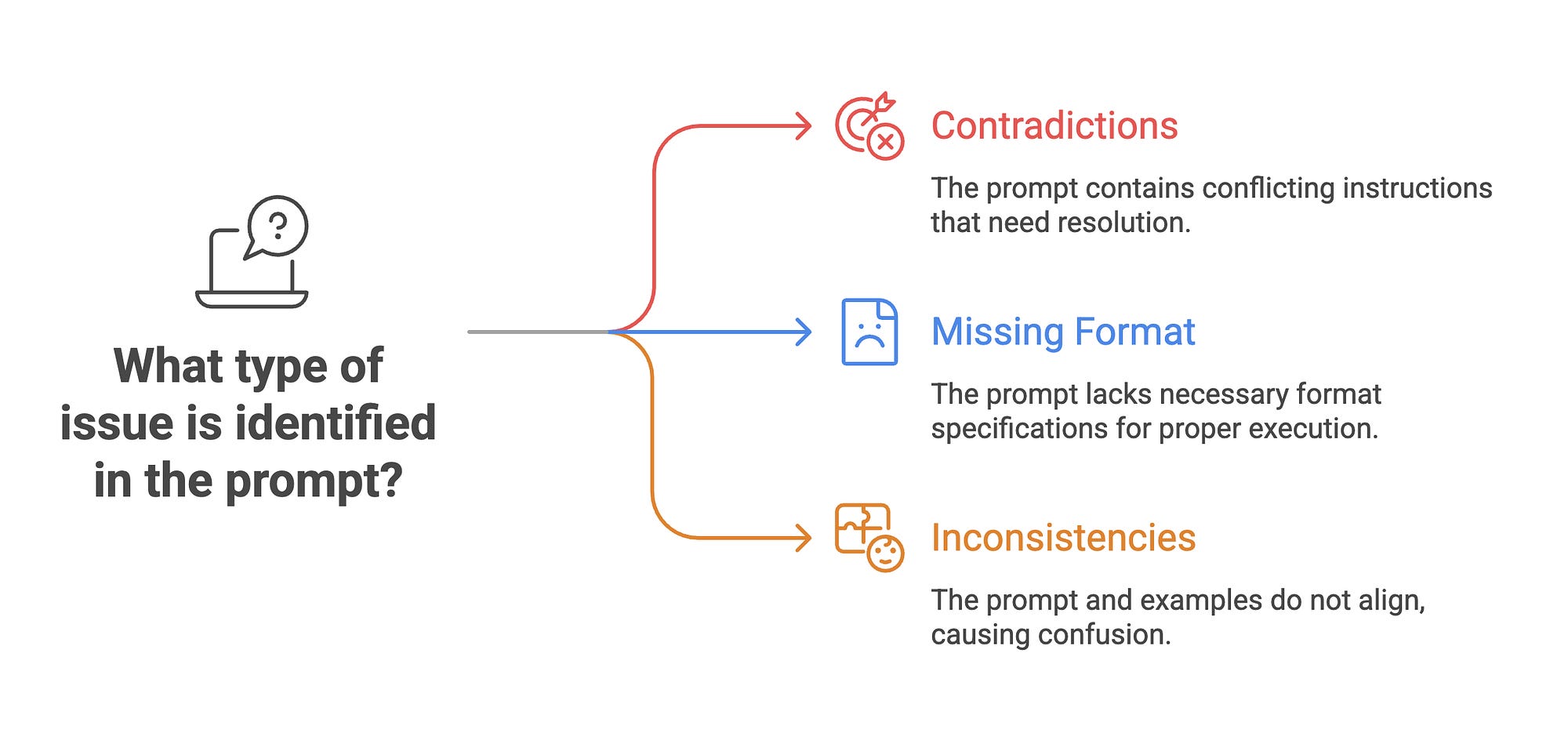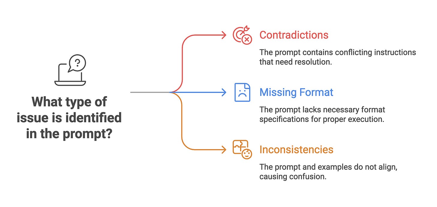 Scans the prompt for logical contradictions or impossible instructions, like “only use positive numbers” and “include negative examples” in the same prompt.