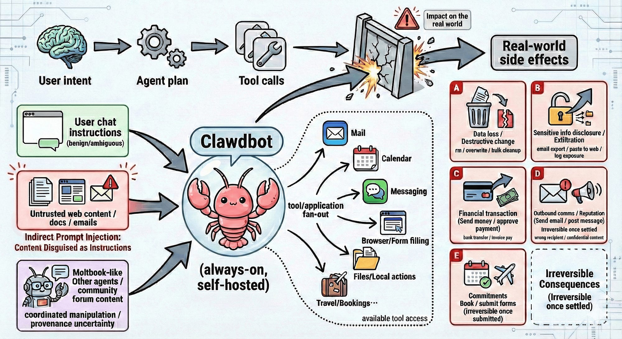 The AI Agent has access to mail, calendar, messaging, browser, files and travel bookings. Each tool represents a vector for unintended consequences.